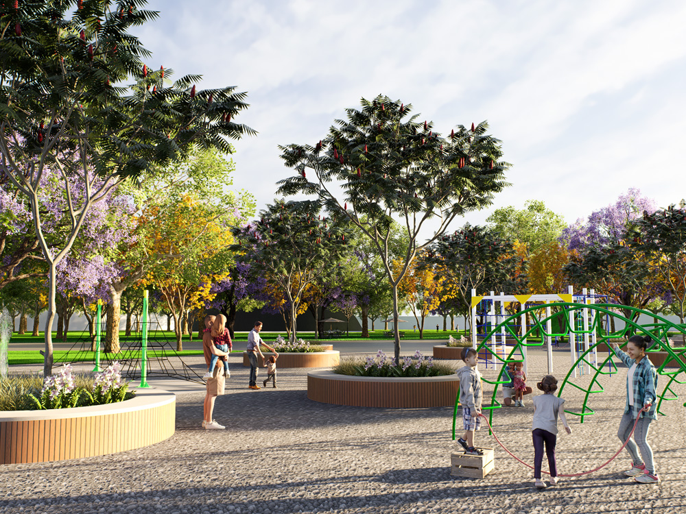 Un extenso corredor verde recorre La Nueva Ciudad con senderos peatonales, ciclovías seguras, áreas de juegos infantiles y espacios de descanso. El pulmón natural de tu comunidad, diseñado para que tu familia se reconecte con la naturaleza cada día.